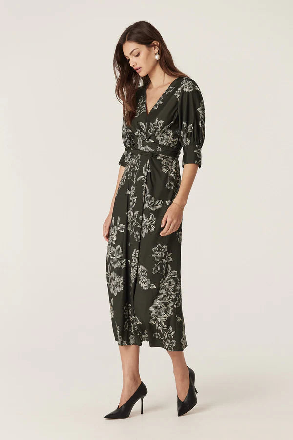 The Holly Dress features a relaxed fit with wrap waist ties and elasticated shirring at the back to sit comfortably through the waist. Crafted from a medium weight satin back viscose, this dress drapes softly through the body and features an exclusive print.