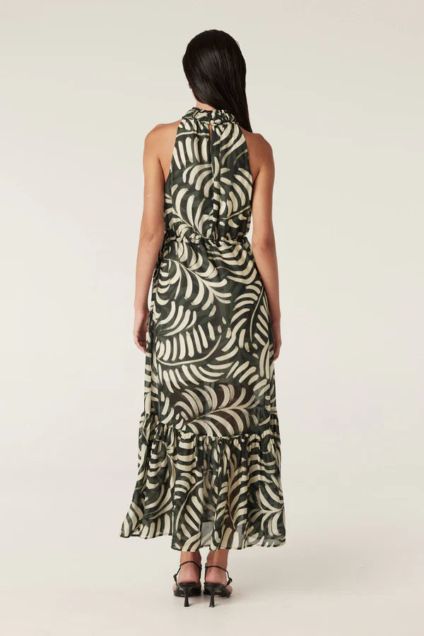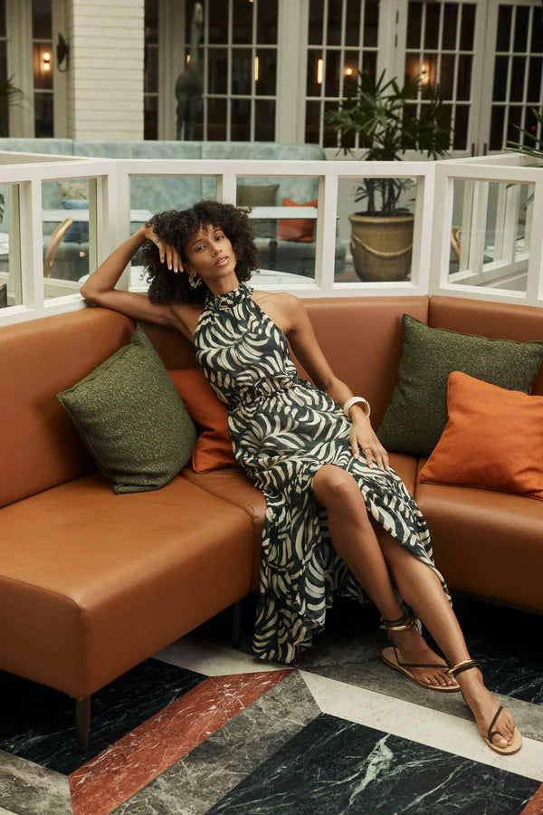The Eden Halter Neck Dress is made from a lightweight silk blend chiffon in an exclusive print. It features a halter neck with a back button closure, a drawstring waist and a hem frill with a front split. Fully lined, this dress brings ease and fluidity to occasion dressing.